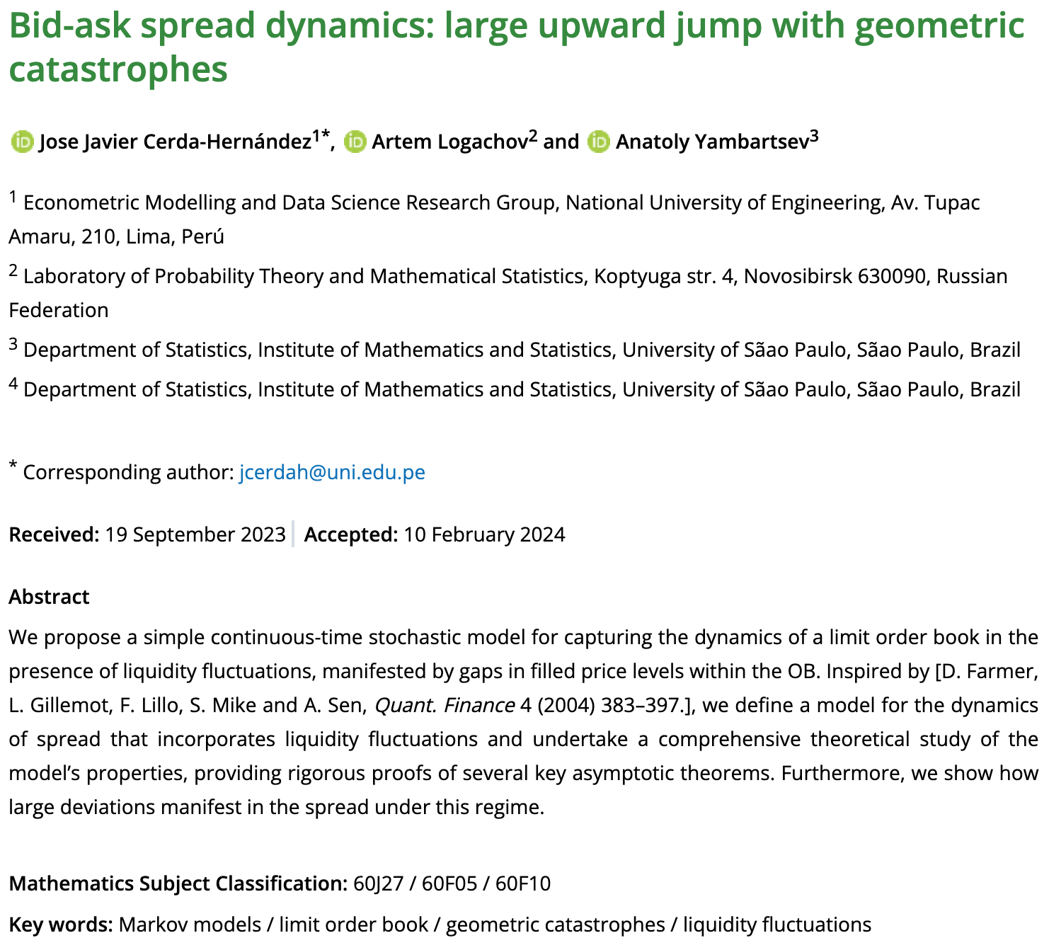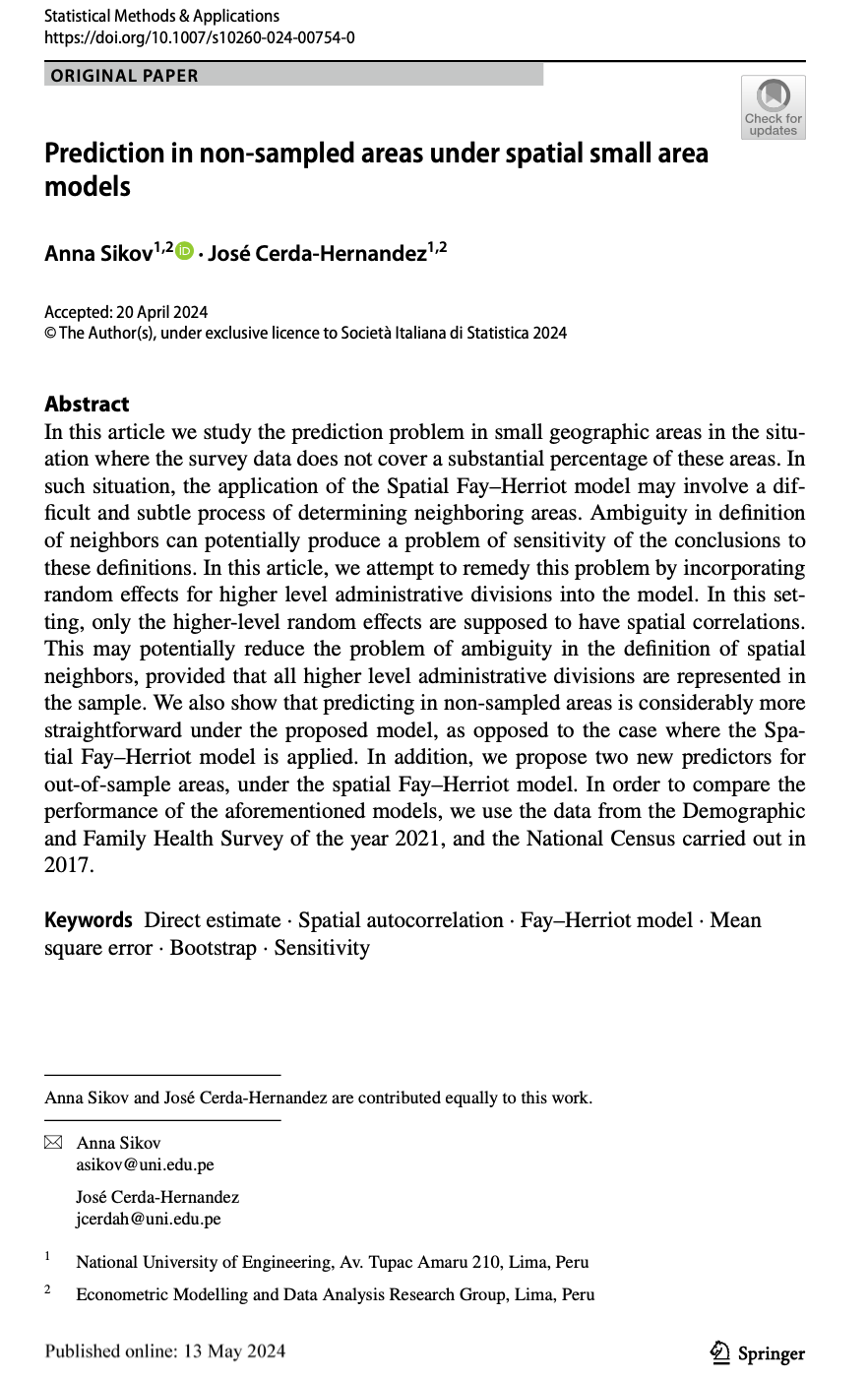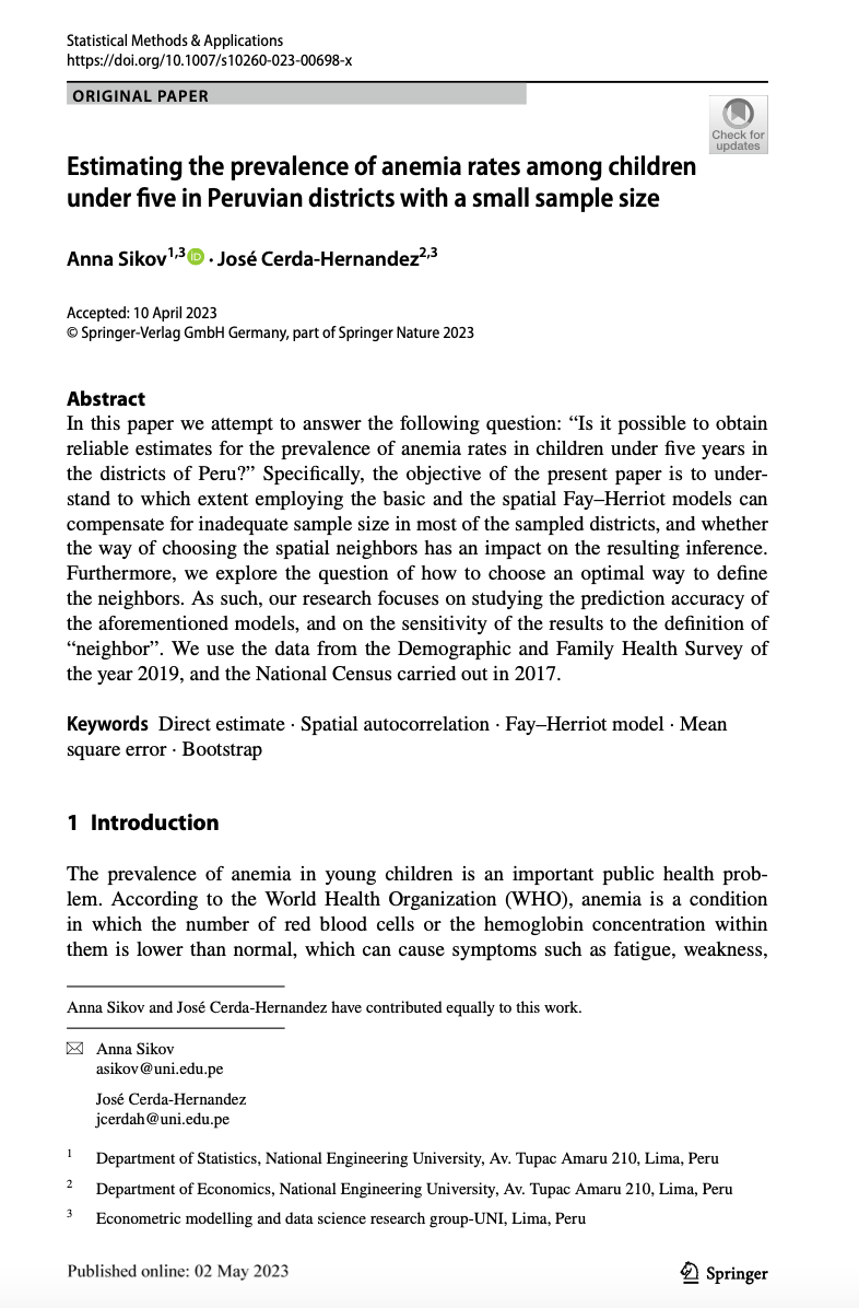 Econometric Modelling and Data Science (EMDS) es un grupo de investigación emergente reconocido por el Vicerrectorado de Investigación de la Universidad Nacional de Ingeniería (UNI) que realiza pesquisa de vanguardia en áreas de la econometría, estadística, probabilidad aplicada y Data Science. El grupo de investigación EMDS colabora con investigadores de la comunidad académica internacional y ejecuta proyectos en colaboración para generar nuevo conocimiento y formar estudiantes en nuestro campo de investigación.